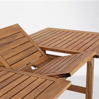 STRUTTURA IN LEGNO DI ACACIA CON FINITURA AD OLIO. FERRAMENTA IN ACCIAIO GALVANIZZATO. ALLUNGABILE. BARRE DI SCORRIMENTO IN PLASTICA. DA ASSEMBLARE